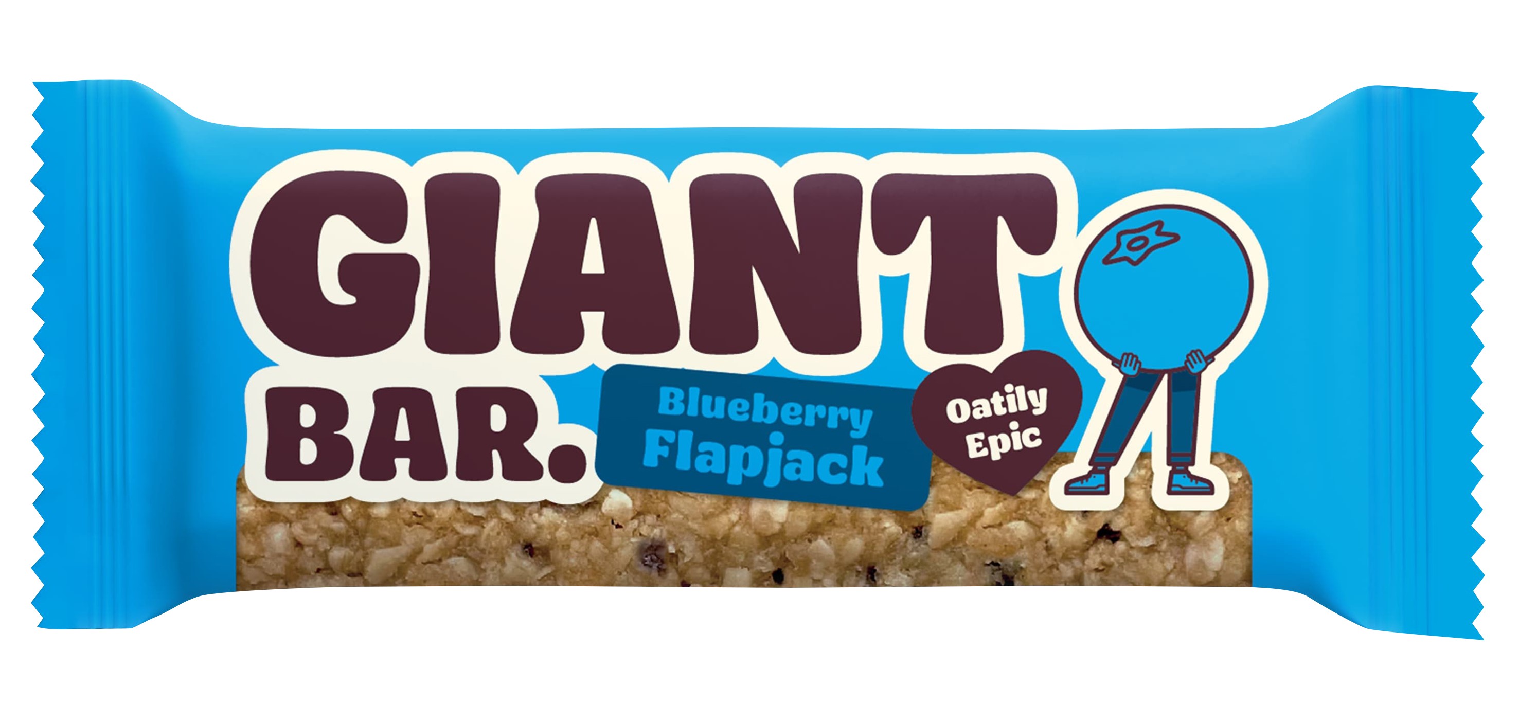 Dieser Flapjack (weicher Müsliriegel aus Haferflocken) von Giant Bar besteht aus leckeren Vollkorn-Haferflocken und fruchtigen Blaubeeren.