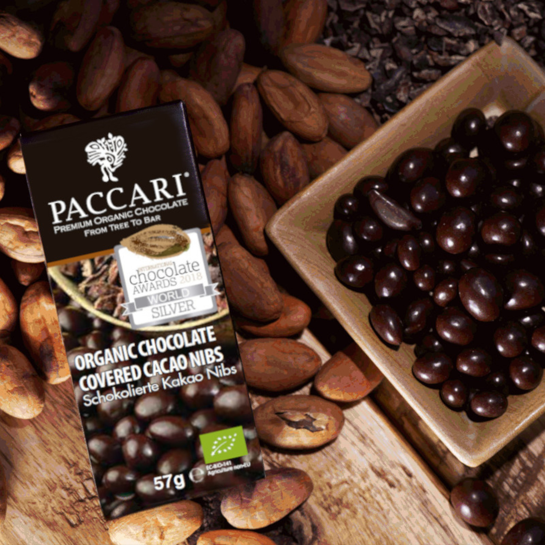 Knusprige Kakaonips überzogen mit dunkler Schokolade. So gut, dass dafür 2018 die Silbermedaille bei den Internationalen Chocolate Awards verliehen wurde.