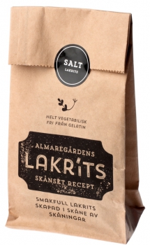 Almaregårdens Lakritz salzig ist ein leicht gesalzenes Lakritz von intensivem Geschmack. Almaregårdens Lakritz salzig wird in Skåne in Südschweden nach einem alten Rezept hergestellt und ist frei von Gelatine und unnötigen Zusätzen. Es werden nur natürliche Rohwaren verwendet - der intensive Geschmack kommt von der Lakritzwurzel aus dem Iran, welche als die beste der Welt gilt.