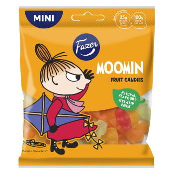 Fazer Moomin fruit sweets enthält eine Mischung aus vier fruchtigen Moomin-Weingummis, die so weich sind wie die Umarmung von moomin-Mamma. Die Tüten sind mit den Lieblingsfiguren Moomintroll und Little My bedruckt. Eine nette Nascherei, die einem den Tag angenehm versüßt.