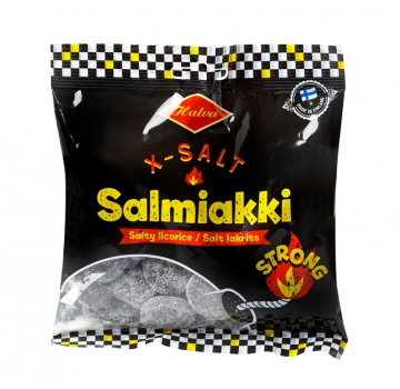 Halva X-Salt Salmiakki ist ein extra starkes finnisches Salmiaklakritz mit Salz umhüllt. Ein Muss für den echten Lakritzfreund!