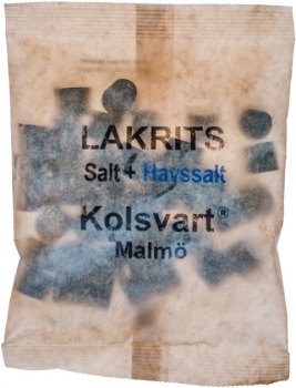 Kolsvart Lakritz SALT+HAVSSALT aus Schweden ist ein klassisches Salzlakritz von ausgewogen-intensivem Geschmack. Kleine Meersalzkörnchen sorgen für eine extra salzige Note und ein zartes Knuspern beim Kauen.