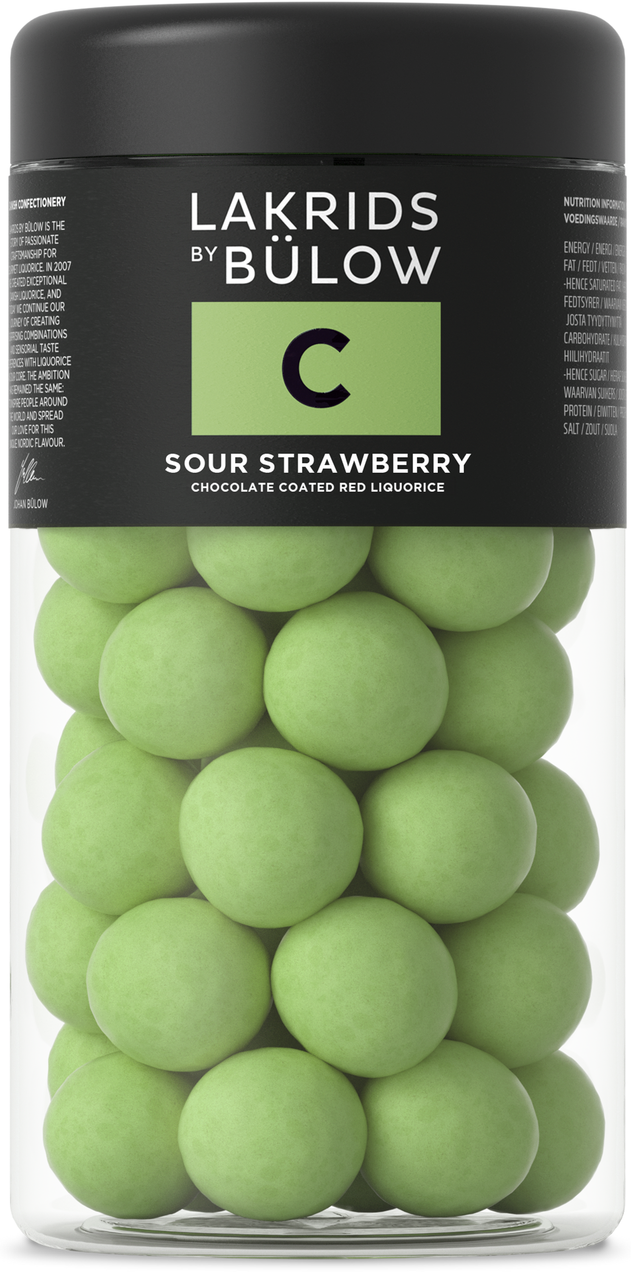Stelle dir köstliche, frisch gepflückte grüne Erdbeeren vor, die zusammen mit roter Lakritze einen verführerischen, fruchtigen Biss haben. Genieße die frischen und säuerlichen Noten knackiger, grüner Erdbeeren in perfekter Balance mit exquisiter roter Lakritze. Die Ummantelung mit seidiger, weißer Schokolade und einer knusprigen, grünen Zuckerhülle sorgen für eine extra saure Note.
