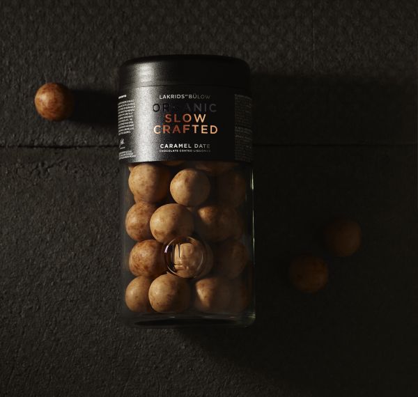In Caramel Date kombinieren die Lakritzkünstler von Bülow eine zarte Dulce Schokolade mit knusprigen Maldon Meersalzflocken für das perfekte süßsalzoge Geschmackserlebnis. Nach der Schokolade kommt die Deglet Nour Dattel dessen cremiger Geschmack perfekt in die herben Noten des langsam gekochten Lakritz aus besten Biozutaten übergeht.