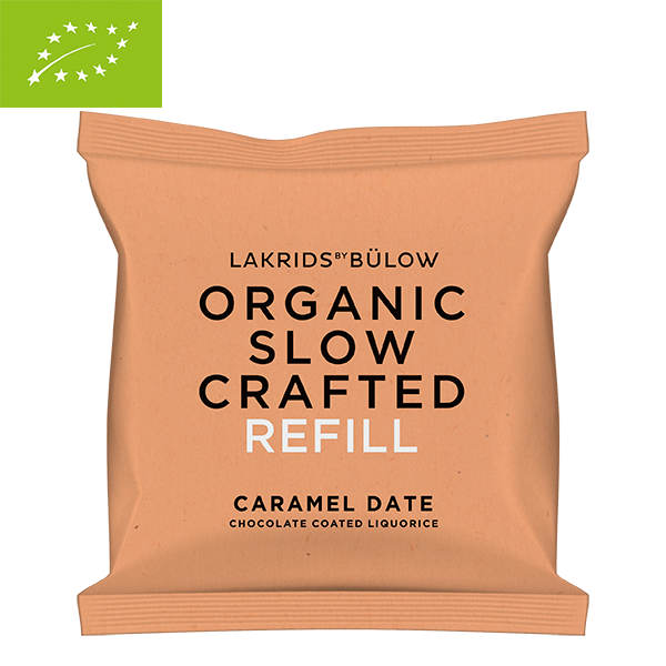 In Caramel Date kombinieren die Lakritzkünstler von Bülow eine zarte Dulce Schokolade mit knusprigen Maldon Meersalzflocken für das perfekte süßsalzige Geschmackserlebnis. Karamellschokolade gefolgt von Deglet Nour Dattel deren cremiger Geschmack perfekt in die herben Noten des langsam gekochten Lakritz aus besten Biozutaten übergeht.
