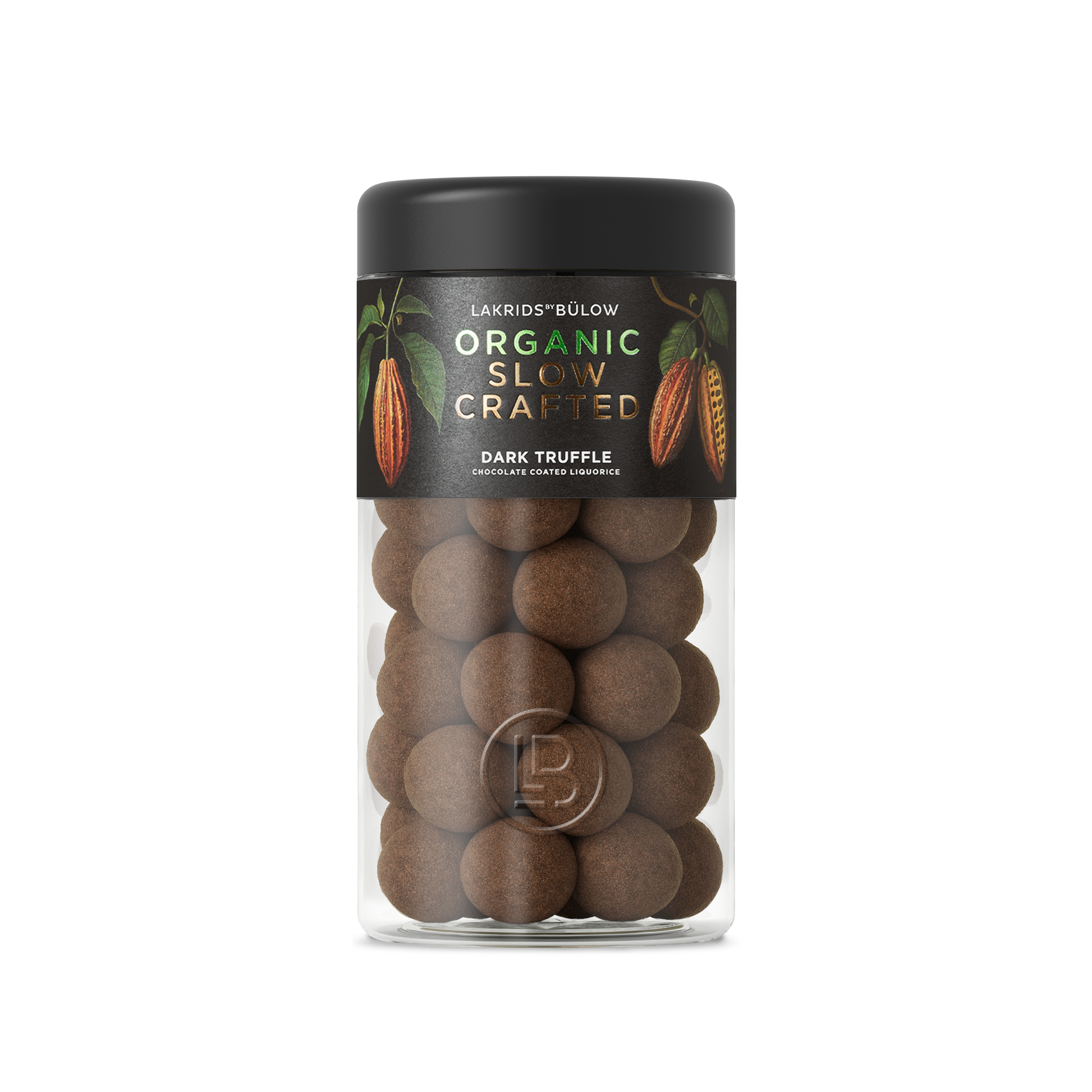 Dark Truffle ist eine Lakritzpraline beschichtet mit einer dünnen Schicht dunkler Schokolade mit fruchtigherben Noten gefolgt von einer weiteren Schicht Vollmilch, die den perfekten Übergang bildet zum langsam gekochten Lakritz mit Zutaten aus biologischem Anbau.