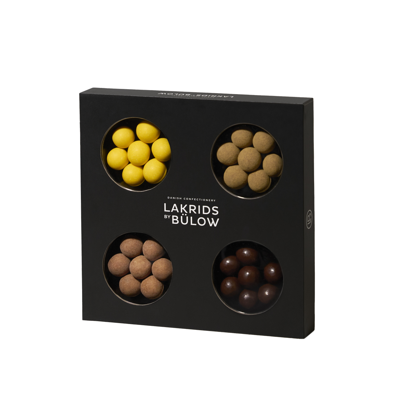 Genieße dänische Lakritze in Schokoladenmantel mit der SMALL SELECTION BOX, die eine köstliche Auswahl der beliebtesten Geschmacksrichtungen aus dem permanenten Sortiment enthält: