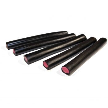 Makulaku Lakritzstangen gefüllt Erdbeer sind 16 cm lange Lakritzstangen mit einer fruchtigen Erdbeerfüllung.