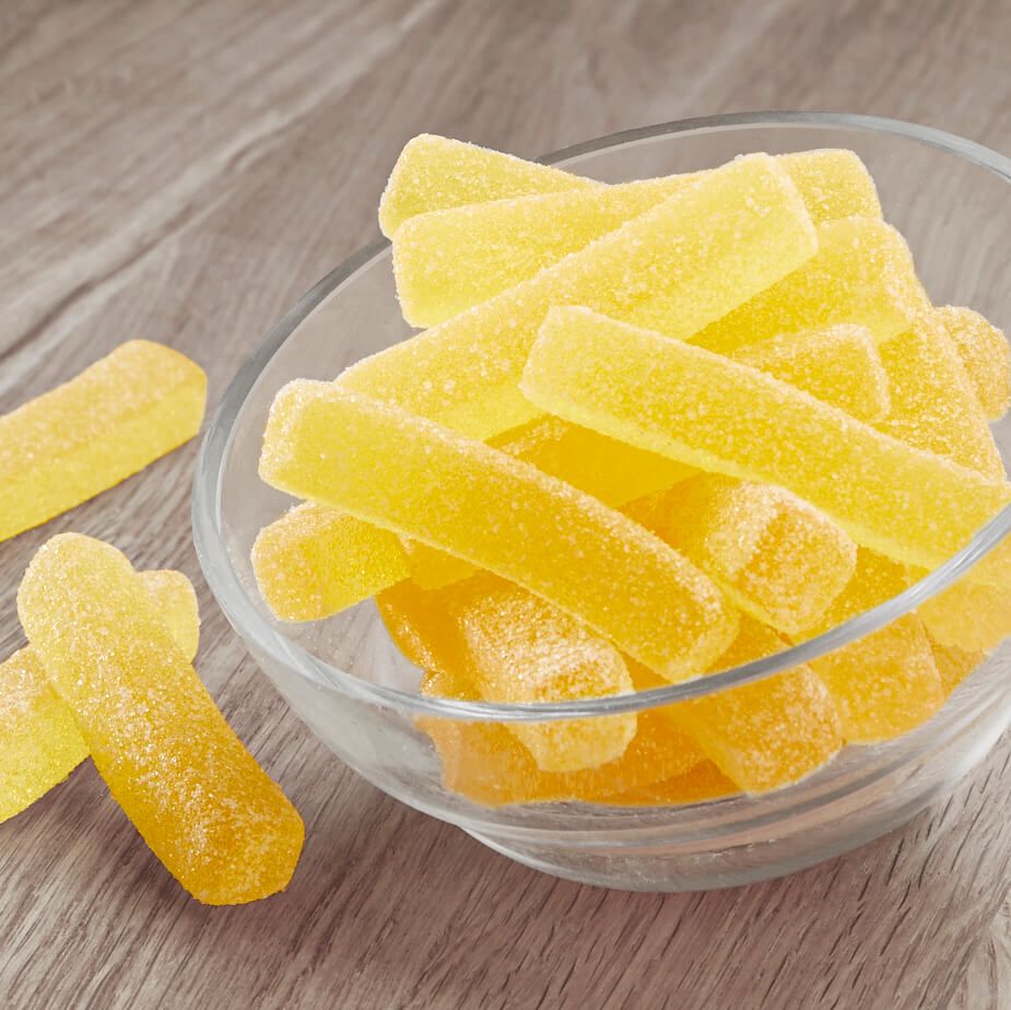 Diese Zitronen-Fruchtgummis in Pommesform sorgen für einen intensiv sauren Genuss. Umhüllt von einer fein abgestimmten Säure entfaltet sich beim Kauen ein frischer Zitronengeschmack, der bewusst wach und lebendig wirkt. Genau richtig für alle, die es gern spritzig mögen und Süßes mit Charakter schätzen.