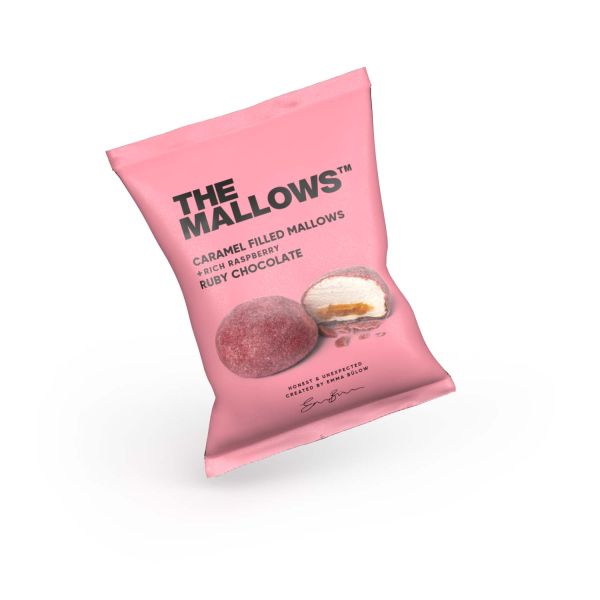 Ruby Chocolate + Rich Raspberry sind mit Karamell gefüllte Marshmallows, umhüllt von fruchtiger Rubin-Schokolade. Der süße Kern aus Karamell schmilzt beim ersten Biss mit dem Vanille-Marshmallow zusammen – und bildet einen perfekten Kontrast zu der frischen Himbeer- und Rubin-Schokolade an der Oberfläche.