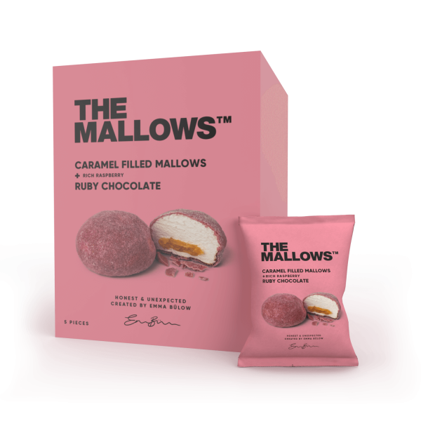 Ruby Chocolate + Rich Raspberry sind mit Karamell gefüllte Marshmallows, umhüllt von fruchtiger Rubin-Schokolade. Der süße Kern aus Karamell schmilzt beim ersten Biss mit dem Vanille-Marshmallow zusammen – und bildet einen perfekten Kontrast zu der frischen Himbeer- und Rubin-Schokolade an der Oberfläche.