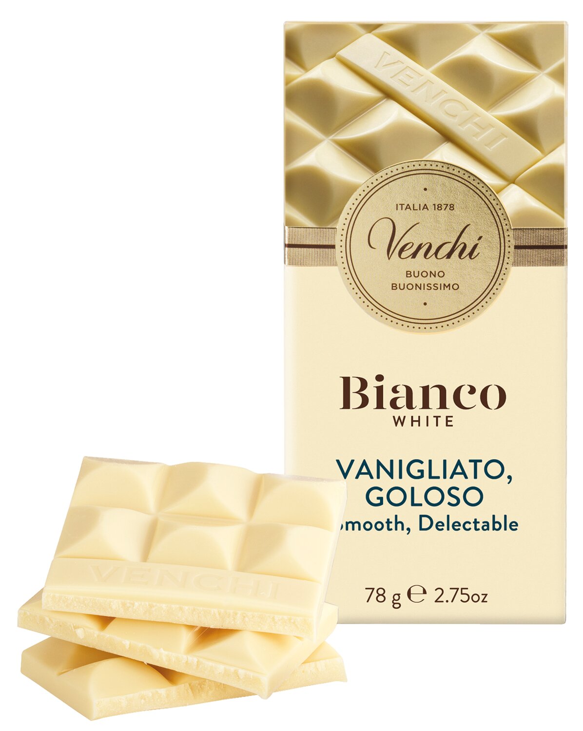 Weiße Schokolade von Venchi, knackig und trotzdem cremig mit einer schönen Vanillenote. Einfach gute weiße SChokolade, die musst du probieren.