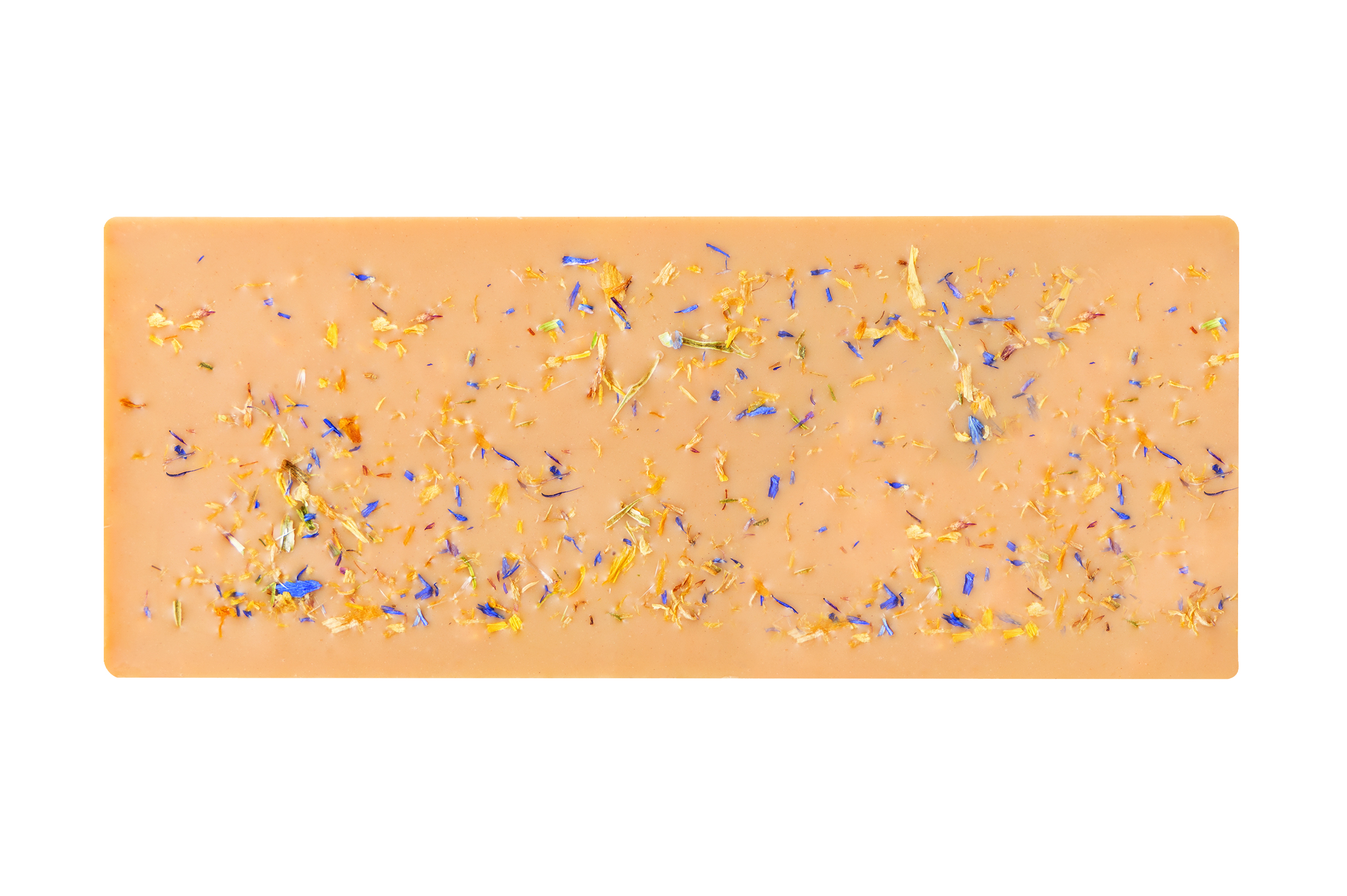 Zutaten: Rohrohrzucker°*, Kakaobutter°*, CASHEWKERNE°*(22%), VOLLMILCHPULVER°, MAGERMILCHPULVER°, SÜSSMOLKENPULVER°, Kakaomasse°*, Vollrohrzucker°*, Ringelblumen°(0,3%), Kornblumen°(0,3%), Emulgator: Lecithin (SOJA)°, Vanilleschotenpulver°*, Steinsalz, Zitronenpulver°(Zitronensaftkonzentrat°, Maisstärke°, Zucker°), Zimt°*