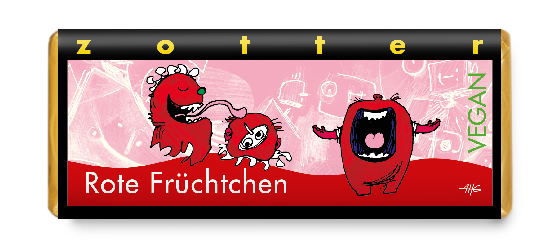 Rohrohrzucker°*, Kakaomasse°*, Kakaobutter°*, MANDELN°(13%), HAFERDRINKPULVER°(5%: HAFER° fermentiert), Sauerkirschen°(3%), Invertzuckersirup°, Erdbeerkonzentrat°(3%), Stärkesirup°, Reisdrinkpulver°(Reis°, Sonnenblumenöl°, Salz), MANDELÖL°, Maracuja gefriergetrocknet° (1%: Maltodextrin°, Maracujasaftkonzentrat°), Orangen gefriergetrocknet°(1%: Orangensaftkonzentrat°, Orangenfruchtfleisch°), Kokospulver°(Kokosnusspaste°, Kokosnussmilch°, Kokosnussmehl°), Preiselbeeren gefriergetrocknet°(1%), Himbeeren gefriergetrocknet°(1%), Zitronen gefriergetrocknet°(0,5%: Zucker°, Zitronensaftkonzentrat°, Mango°, Stärke°), Zitronensaftkonzentrat°, Vollrohrzucker°*, Kokosraspeln°*, Emulgator: Lecithin (Sonnenblume)°, Emulgator: Lecithin (SOJA)°, Steinsalz, Vanilleschotenpulver°*, Zitronenpulver°(Zitronensaftkonzentrat°, Maisstärke°, Zucker°), Ingwerpulver°, Sternanis°, Zimt°*